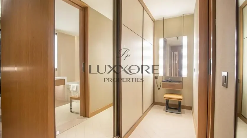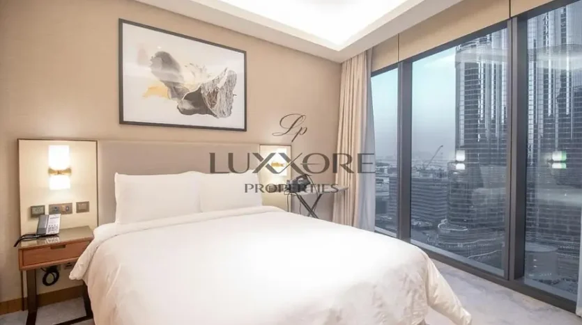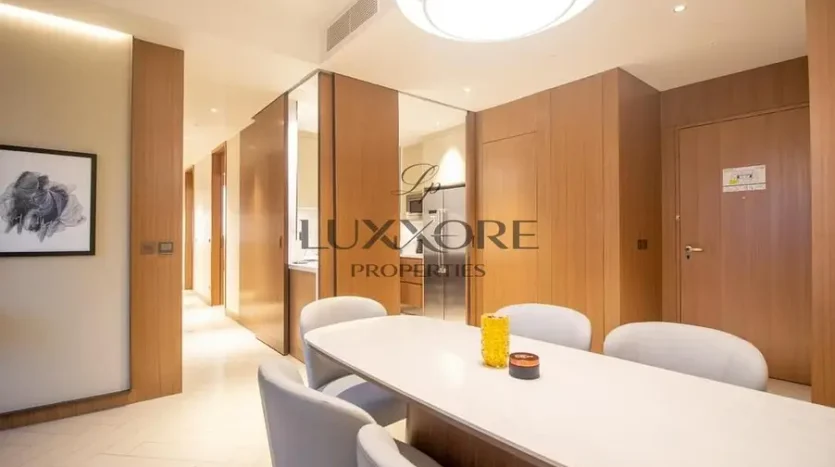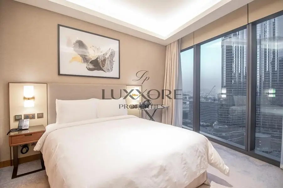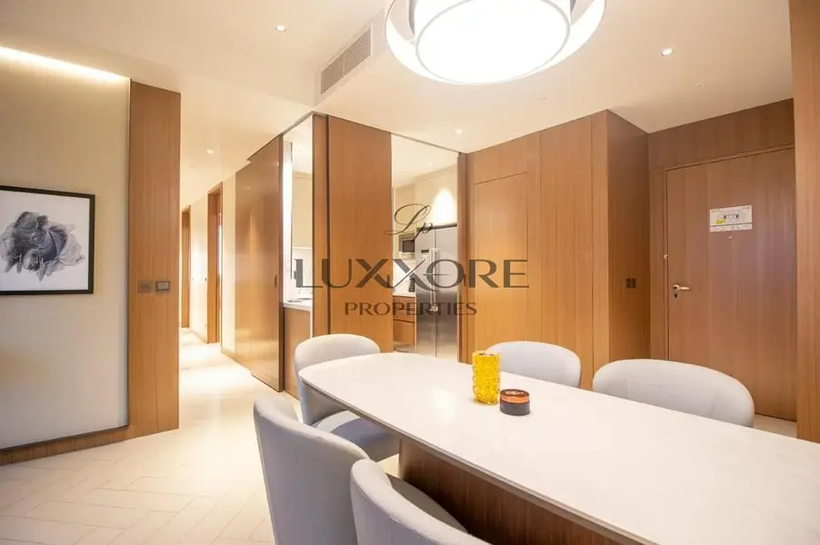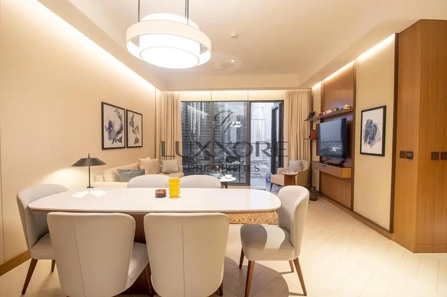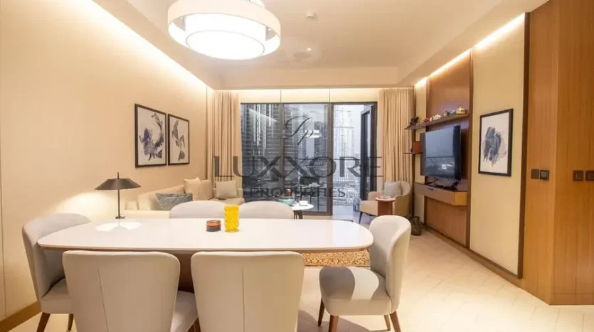 This furnished 3-bedroom apartment for rent in Address Residences Dubai Opera is located on a high floor and offers a direct Burj Khalifa view. The unit spans 1,575 sqft and features a spacious balcony with open skyline views.