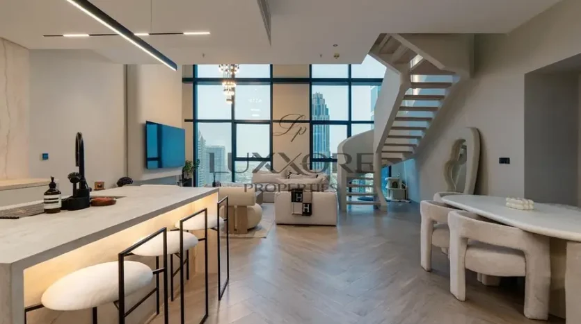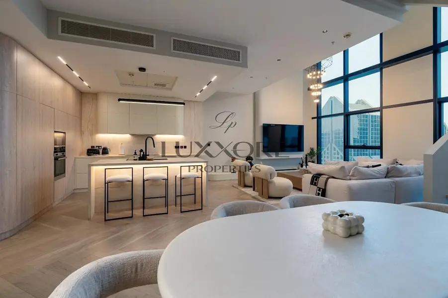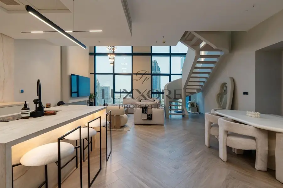 Presenting a rare loft-style duplex residence in Central Park Towers, DIFC, offering expansive proportions, dramatic ceiling heights, and a private terrace with stunning skyline views.